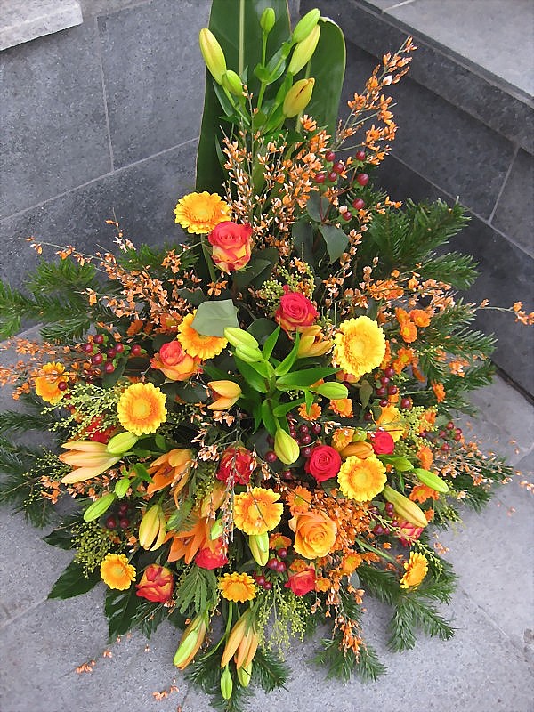 Bukett: Farblich abgestimmte Blumen werden in eine Steckvorrichtung gestuft nach hinten höher gearbeitet Trauerschleifen für einen persönlichen Abschiedsgruß finden Sie auf der rechten Menüleiste. Abbildung zeigt in etwa die Premium-Variante. Da wir jeden Blumenschmuck individuell für Sie anfertigen, kann es zu natürlichen Farbspielen und Abweichungen der Blumenauswahl kommen.Selbstverständlich bemühen wir uns Ihre Bestellung so genau wie möglich auszuführen. Lieferzeit: ca.1Werktag, in dringenden Fällen auch noch am gleichen Tag. Sollten Sie Fragen haben? Telefon 089/400182