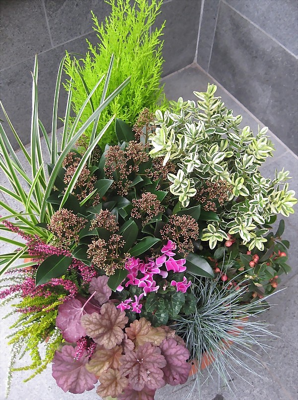 Pflanzschale: Viele schöne Pflanzen der Saison werden zu einer dekorativen Schale gepflanzt.