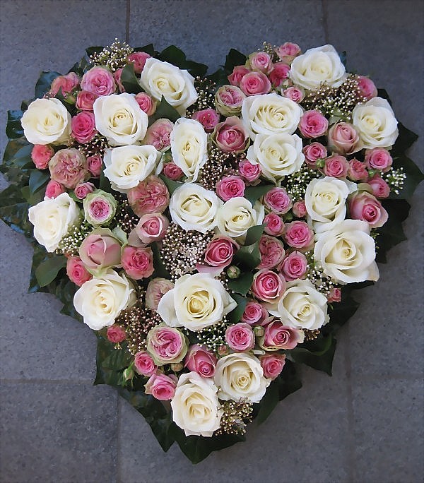 Rosenherz: In eine herzförmige Unterlage werden ganz dicht, fast Kopf an Kopf die ausgesuchten Blüten arrangiert. Trauerschleifen für einen persönlichen Abschiedsgruß finden Sie auf der rechten Menüleiste. Da wir jeden Blumenschmuck individuell für Sie anfertigen, kann es zu natürlichen Farbspielen und Abweichungen der Blumenauswahl kommen.Selbstverständlich bemühen wir uns Ihre Bestellung so genau wie möglich auszuführen. Lieferzeit: ca.1Werktag, in dringenden Fällen auch noch am gleichen Tag. Sollten Sie Fragen haben? Telefon 089/400182