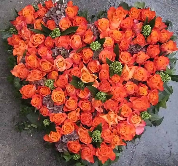 Rosenherz: In eine herzförmige Unterlage werden ganz dicht, fast Kopf an Kopf die ausgesuchten Blüten arrangiert.
