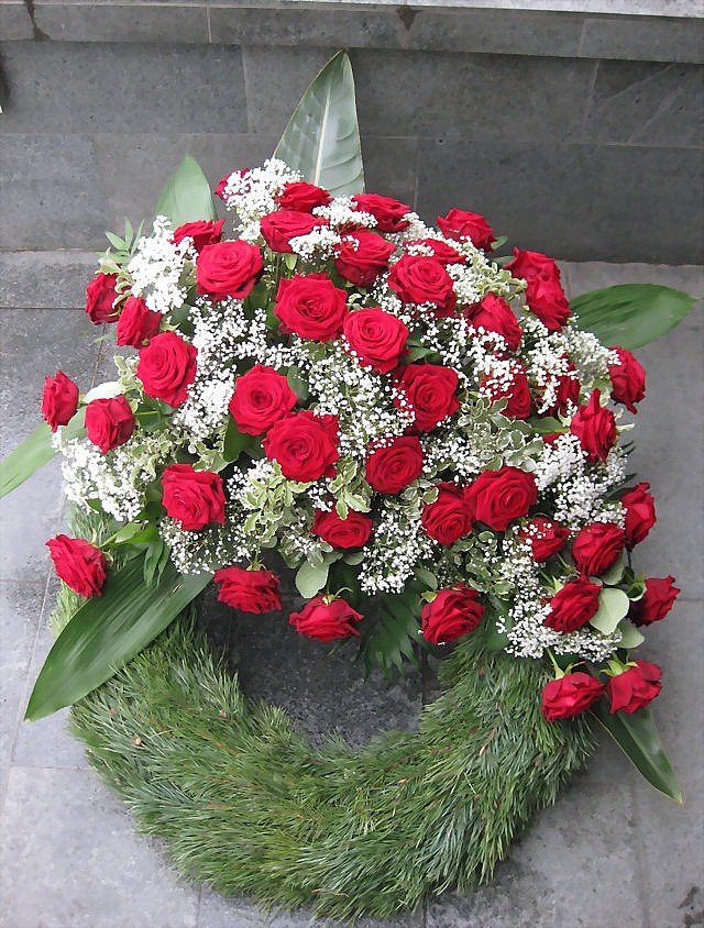 Rosenkranz klassisch: Premium Rosen werden mit dekorativem Beiwerk aufgelockert im oberen Drittel des Kranzes arrangiert. Trauerschleifen für einen persönlichen Abschiedsgruß finden Sie auf der rechten Menüleiste. Abbildung zeigt in etwa die Premium-Variante. Da wir jeden Blumenschmuck individuell für Sie anfertigen, kann es zu natürlichen Farbspielen und Abweichungen der Blumenauswahl kommen.Selbstverständlich bemühen wir uns Ihre Bestellung so genau wie möglich auszuführen. Lieferzeit: ca.1Werktag, in dringenden Fällen auch noch am gleichen Tag. Sollten Sie Fragen haben? Telefon 089/400182